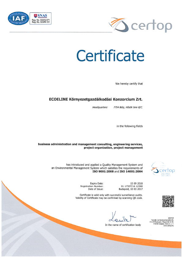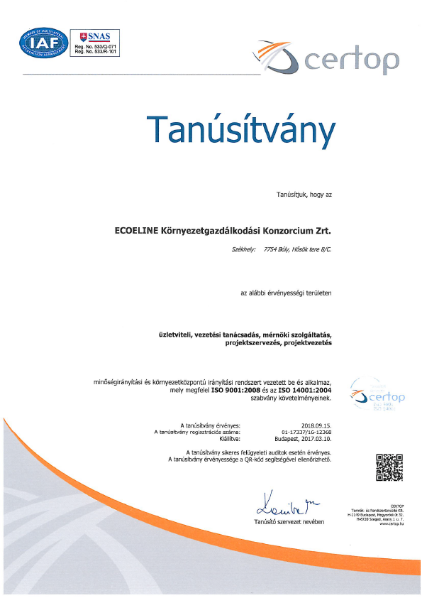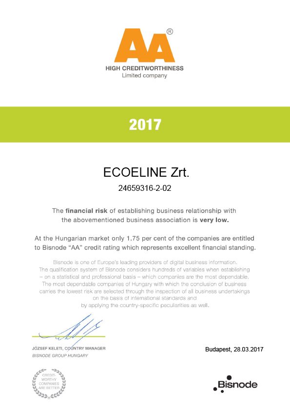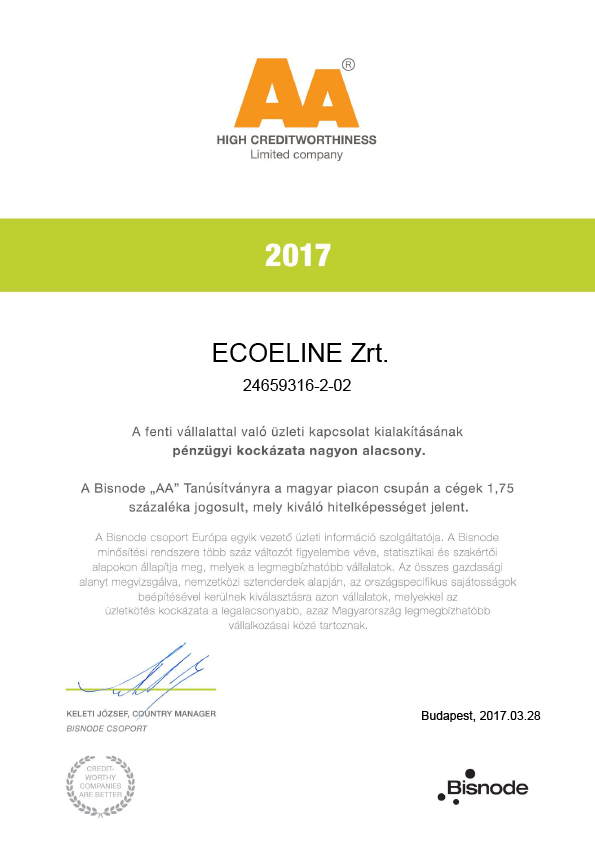 Kedvezményezett neve: ECOELINE Mérnök Iroda Zártkörűen Működő Részvénytársaság